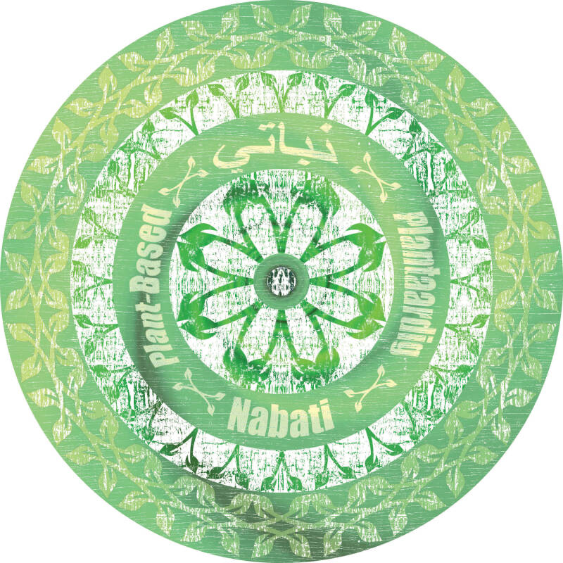 Then I started to experiment with this label in countless different ways until I created a series of variations that I could use in my design. The point of the image that I wanted to create is to highlight the Arabic label of Plant-Based (Nabati) and also to create a green-filled image that resembles the feelings I have in my head when I think about a Plant-Based revolution (see slideshow below).